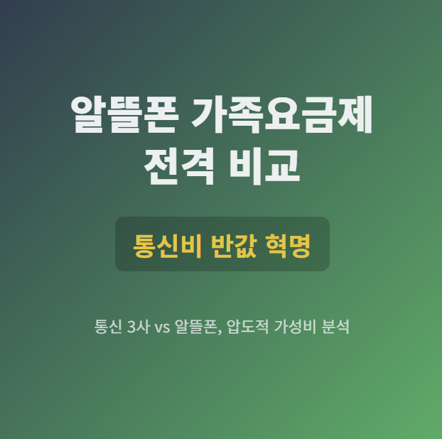 알뜰폰 가족요금제 전격 비교통신 3사 vs 알뜰폰, 우리 가족 통신비 얼마나 아낄 수 있을까?통신비, 온 가족이 모이면 월 20만 원은 우습게 넘어갑니다. 통신 3사의 '가족결합'은 분명 좋은 할인 제도지만, 기본 요금 자체가 비싸다는 한계가 있죠. 하지만 시야를 조금만 넓혀 '알뜰폰'으로 가족을 묶으면, 통화 품질은 그대로 유지하면서 통신비를 절반 가까이 줄이는 마법이 가능해집니다.알뜰폰 가족결합, 이런 분들께 강력 추천!✔️ 통신 3사의 비싼 월 요금이 부담스러운 분✔️ 멤버십, VIP 혜택보다 실질적인 요금 할인이 더 중요한 분✔️ 약정 없이 자유롭게 통신사를 옮기고 싶은 분✔️ 가족 구성원의 데이터 사용량이 제각각이라 맞춤 요금제가 필요한 분통신 3사 vs 알뜰폰: 4인 가족 통신비 비교가장 현실..
