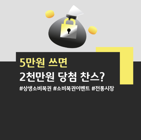 5만원 쓰고 2천만원? 상생소비복권 & 숙박페스타 찬스!소비가 곧 혜택이 되는 꿀팁, 지금 바로 확인하세요.💸 5만원으로 2천만원 당첨? '상생소비복권'중소벤처기업부가 소상공인과 지역 상권 활성화를 위해 진행하는 파격적인 이벤트입니다. 전통시장에서 소소한 소비만으로 큰 행운의 주인공이 될 수 있습니다.참여 방법 전국 전통시장 및 상점가에서 5만원 이상 물품을 구매하고 영수증을 챙기세요. (카드, 현금영수증 모두 가능)응모 방식 '상생소비복권.kr' 공식 홈페이지에 접속하여 구매 영수증을 촬영해 업로드하면 응모가 완료됩니다.당첨 혜택 추첨을 통해 최대 2,000만원 상당의 디지털 온누리상품권 등 푸짐한 경품을 지급합니다. 5만원 당 1회 응모 기회가 주어지며, 많이 응모할수록 당첨 확률이 높아집니다.🏨..