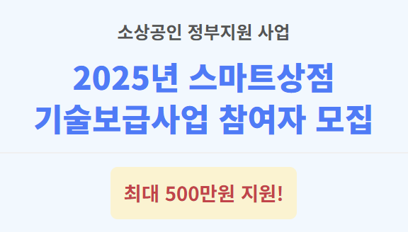 2025년 스마트상점 기술보급 사업 총정리사장님을 위한 핵심 요약 & 신청 가이드 (소상공인 추가모집)내 가게의 경쟁력을 높이고 싶지만, 키오스크나 서빙 로봇 도입 비용이 부담스러우셨나요? 중소벤처기업부와 소상공인시장진흥공단이 스마트 기술 도입 비용의 70% 이상을 지원하는 사업의 추가 참여자를 모집합니다. 복잡한 공고 내용을 사장님 입장에서 알기 쉽게 정리했습니다.✅ 사업 핵심 요약 (이것만 알아도 충분해요!)지원 대상: 현재 정상적으로 영업 중인 소상공인이라면 누구나지원 내용: 서빙로봇, 키오스크, 테이블오더, 경영관리 S/W 등 스마트 기술지원 금액: 구매 시 최대 500만원, 렌탈 시 연 최대 350만원 지원신청 기간: 2025년 8월 11일(월) 14시 ~ 9월 4일(목) 18시까지신청 방법: ..